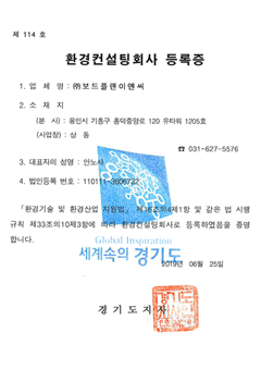 - 환경영향평가 대행자 1종 등록(제서-275)